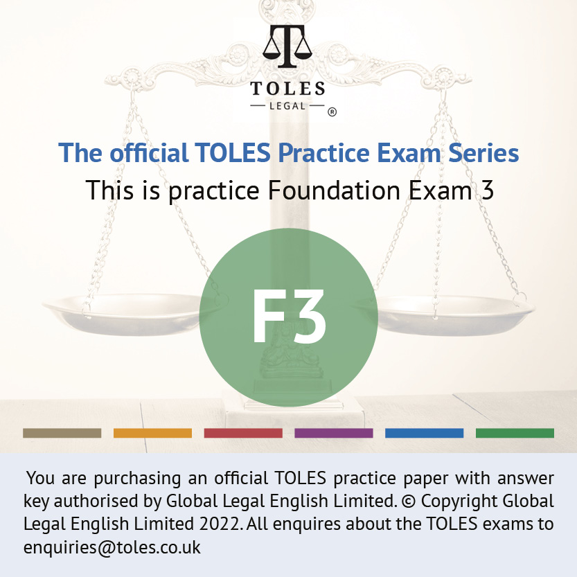本模拟题为Global Legal English Limited授权的TOLES官方初级模拟试题练习第三本(含答案)。