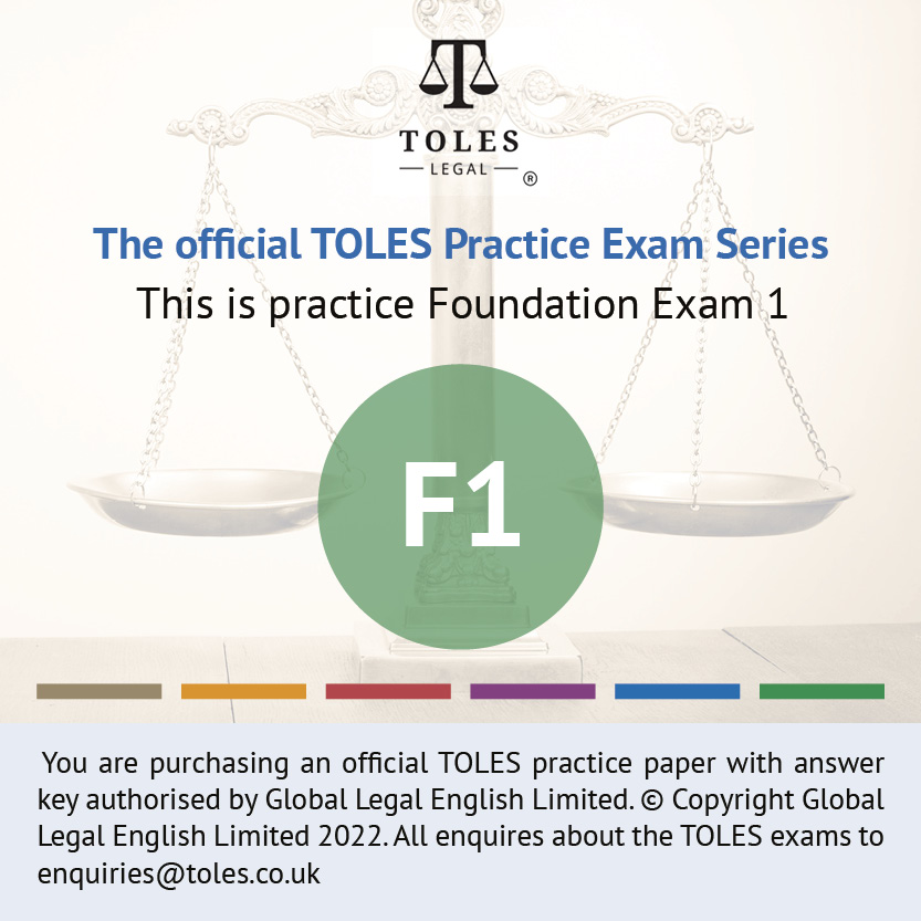 本模拟题为Global Legal English Limited授权的TOLES官方初级模拟试题练习第一本(含答案)。